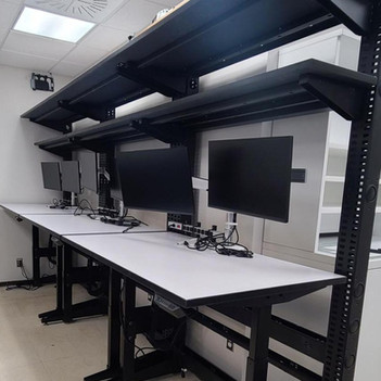 Pour ce projet, notre client a choisi notre banc tecnique Integration F500. Ce système est la solution idéale pour les environnements informatisés tels que les laboratoires informatiques, les ateliers scientifiques et les centres de service et de réparation. Le système a été spécialement conçu et fabriqué pour les environnements de travail dans lesquels l’équipement est utilisé intensivement et nécessite donc les normes de durabilité les plus élevées. Pour répondre aux critères ergonomiques du projet, les surfaces de travail sont réglables électroniquement en hauteur, tout en fournissant une solution élégante de gestion des câbles en utilisant des chaînes de câbles et des chemins de roulement électriques pour donner aux utilisateurs un accès facile à l’alimentation et aux données. Ses surfaces de travail et ses étagères cpu peuvent être installées à différentes hauteurs sur la structure verticale pour s’adapter aux tâhes de travail de l’utilisateur et sont disponibles dans de nombreuses tailles et finitions. Nous avons également fourni à notre client une version à hauteur fixe du banc technique qui comprend trois étagères pour maximiser les capacités de stockage.